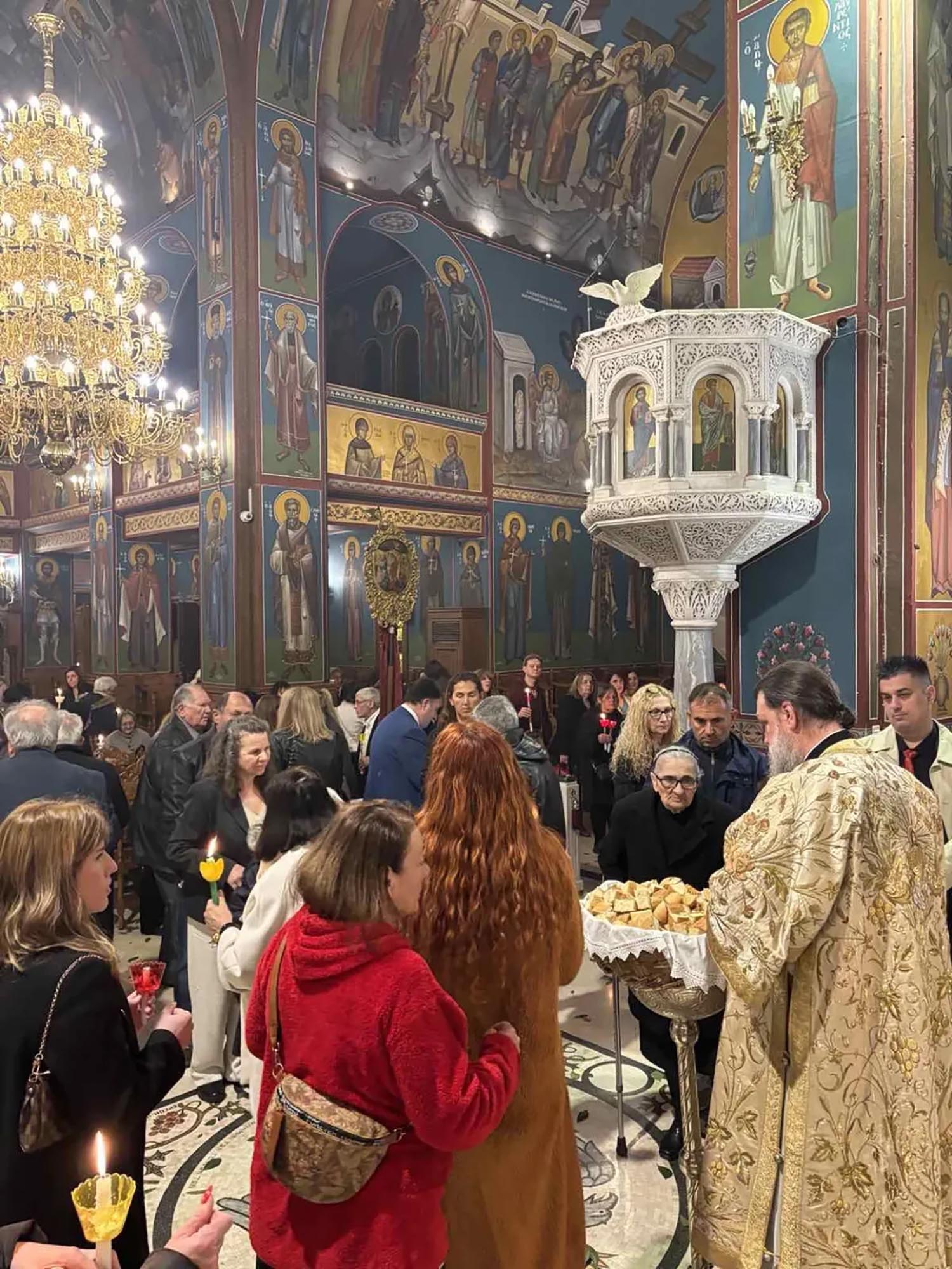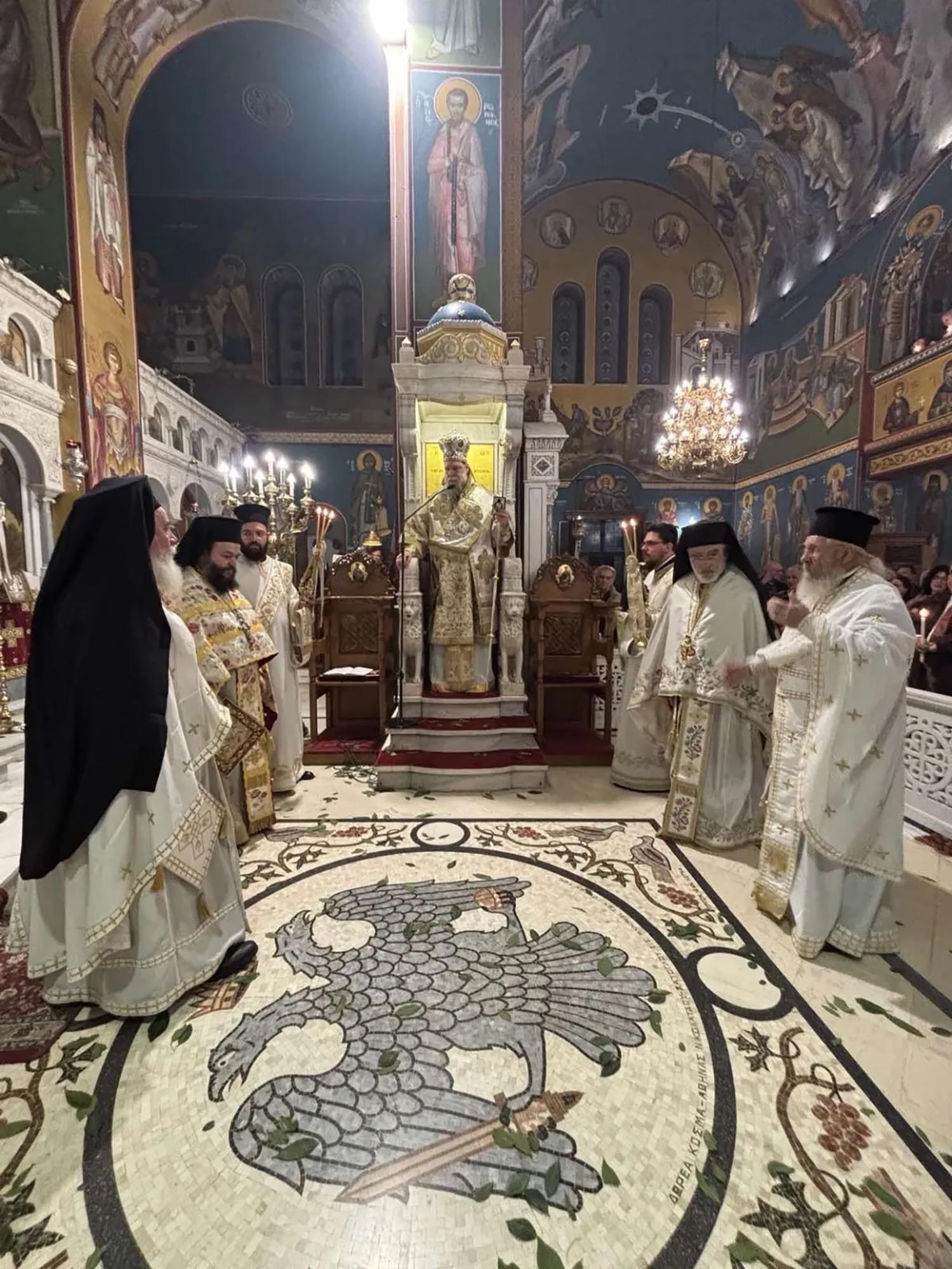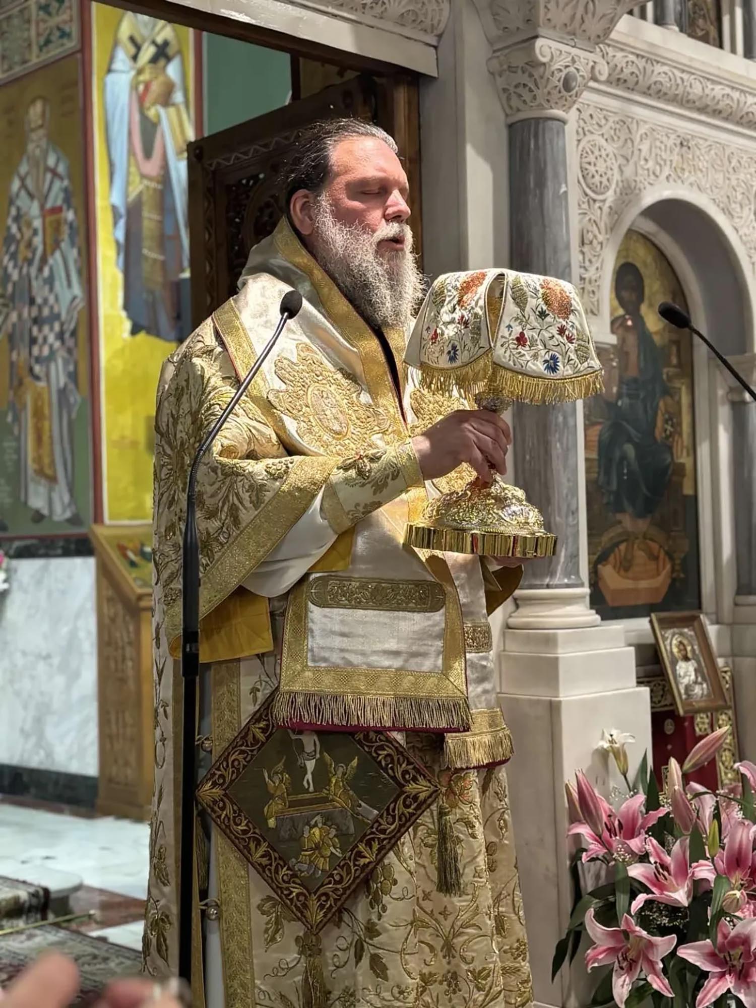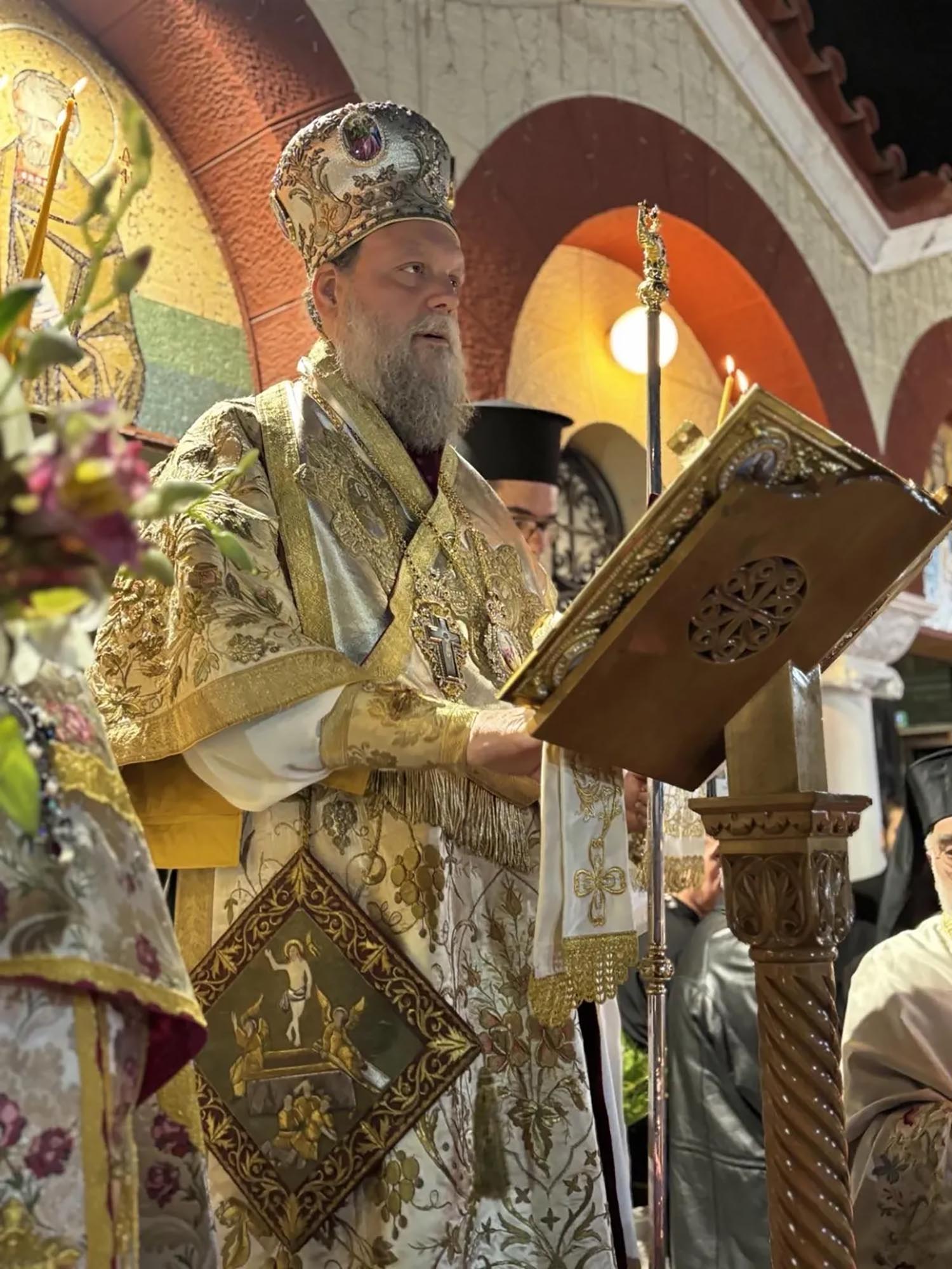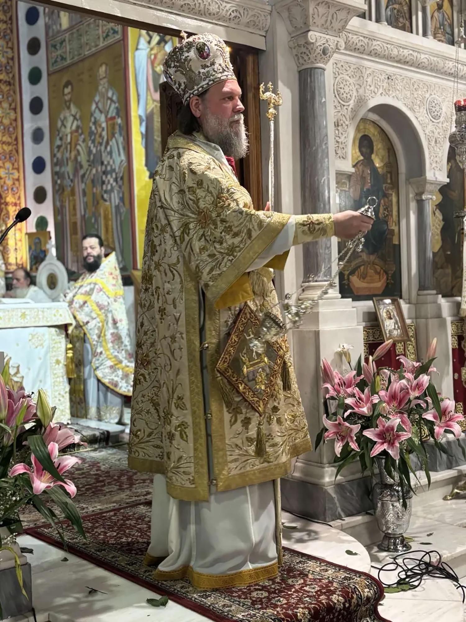 Προ της Απολύσεως της Θείας Λειτουργίας, ο Σεβασμιώτατος Μητροπολίτης κ. Γαβριήλ απηύθυνε προς το πυκνό εκκλησίασμα τον αναστάσιμο χαιρετισμό του, εκφράζοντας παράλληλα πατρικές ευχές για ειρήνη στον κόσμο, υγεία, αγάπη και πνευματική χαρά σε κάθε οικογένεια, τονίζοντας ότι το φως της Αναστάσεως καλεί όλους σε μία νέα πορεία ζωής, που θεμελιώνεται στη θυσιαστική αγάπη και στη νίκη του Χριστού επί του θανάτου.