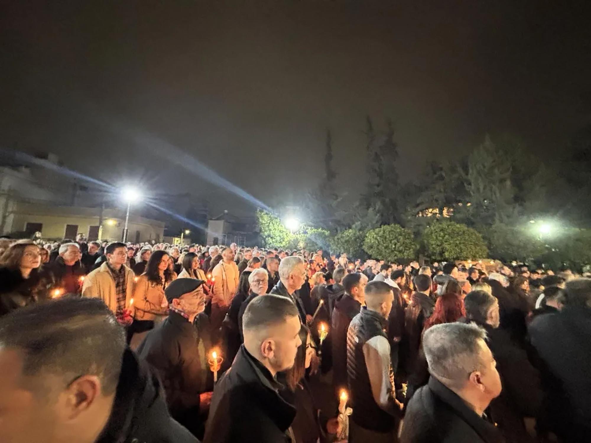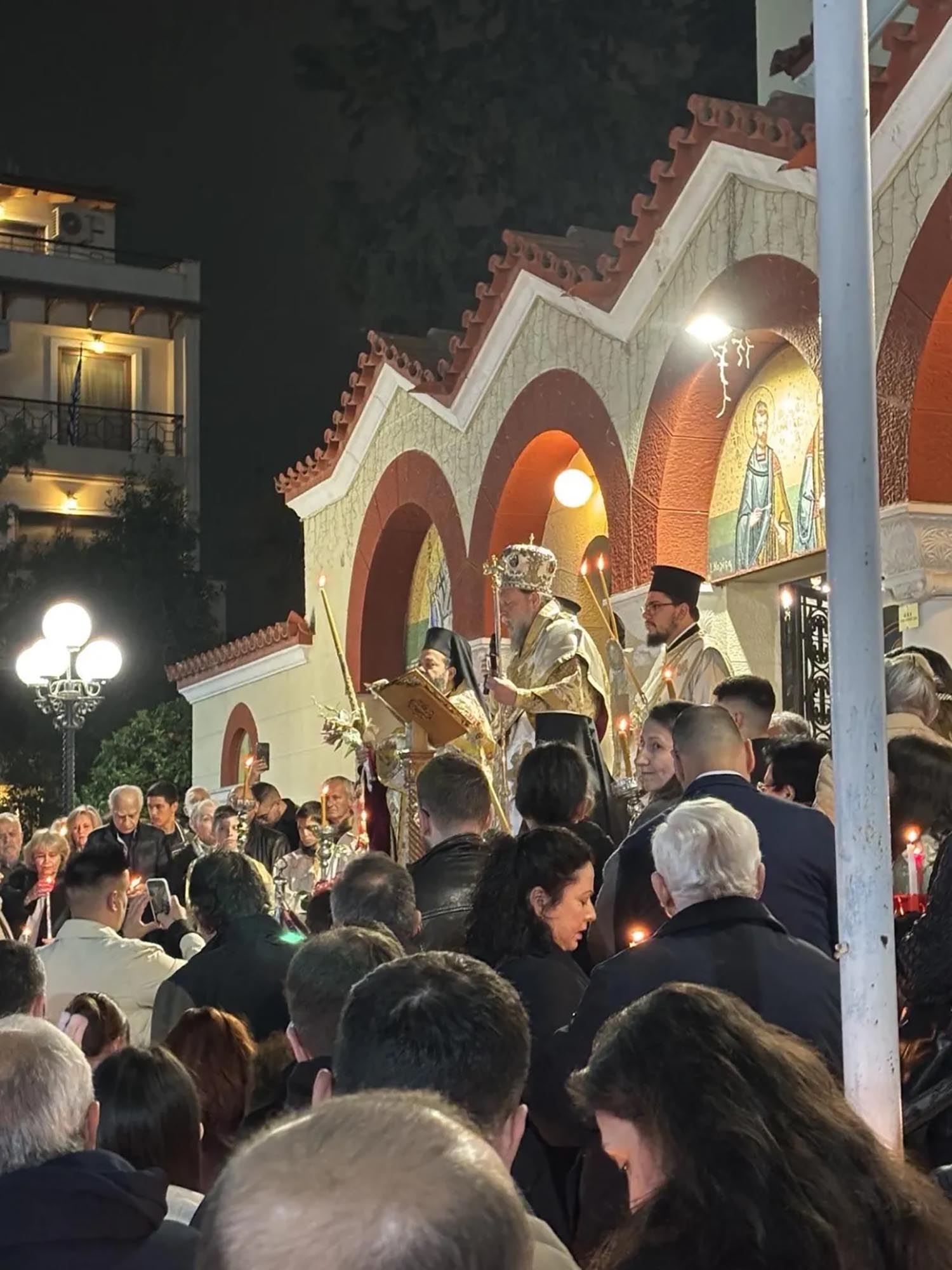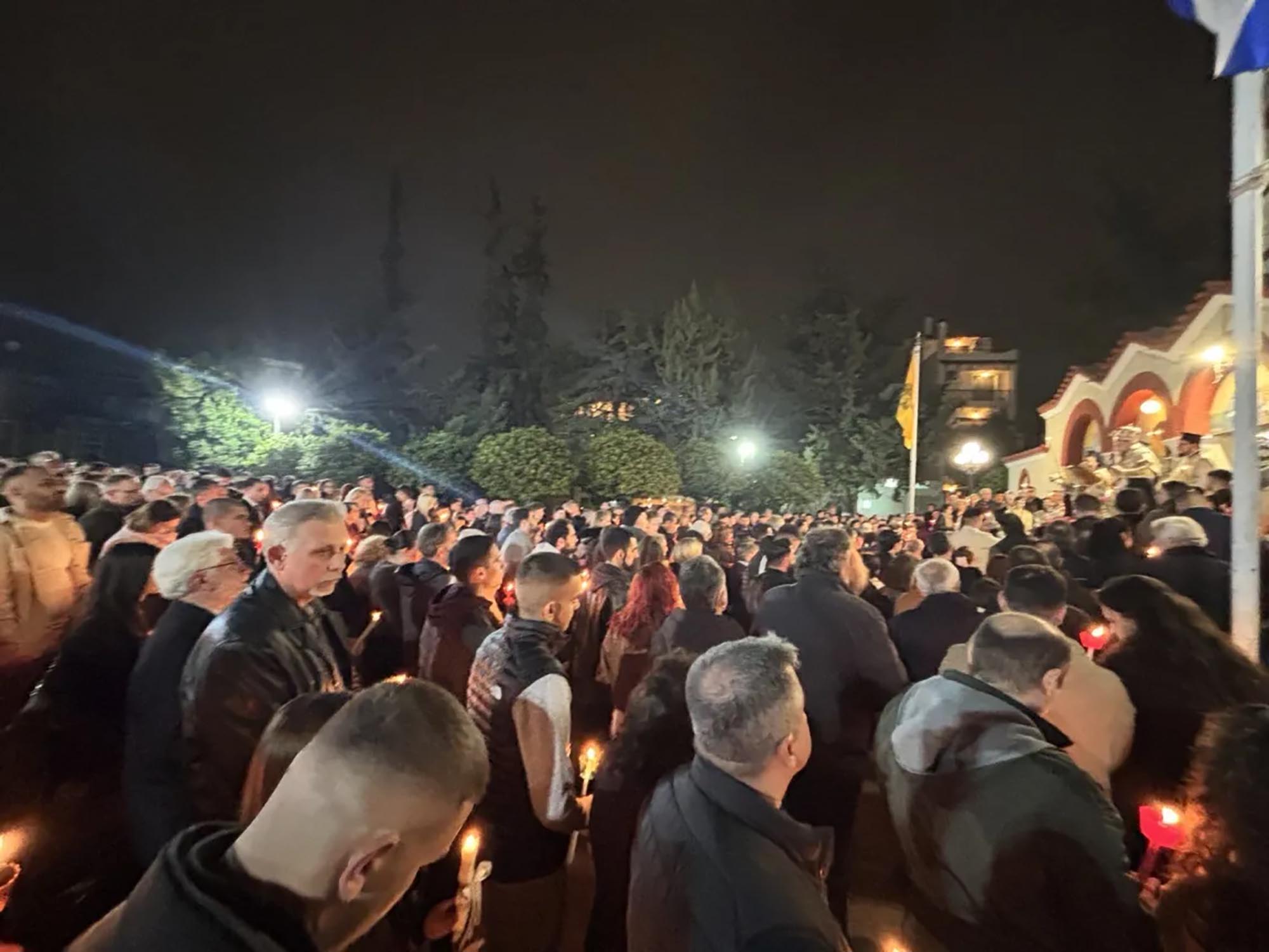 Πλήθος πιστών, με ευλάβεια και κατάνυξη, κρατώντας αναμμένες λαμπάδες από το ανέσπερο φως, κατέκλυσαν τον προαύλιο χώρο του Μητροπολιτικού Ναού για να ακούσουν τον νικητήριο παιάνα της Εκκλησίας μας «Χριστός Ανέστη», που σηματοδοτεί τον θρίαμβο της θείας δόξης και την οριστική νίκη της ζωής επί του θανάτου.