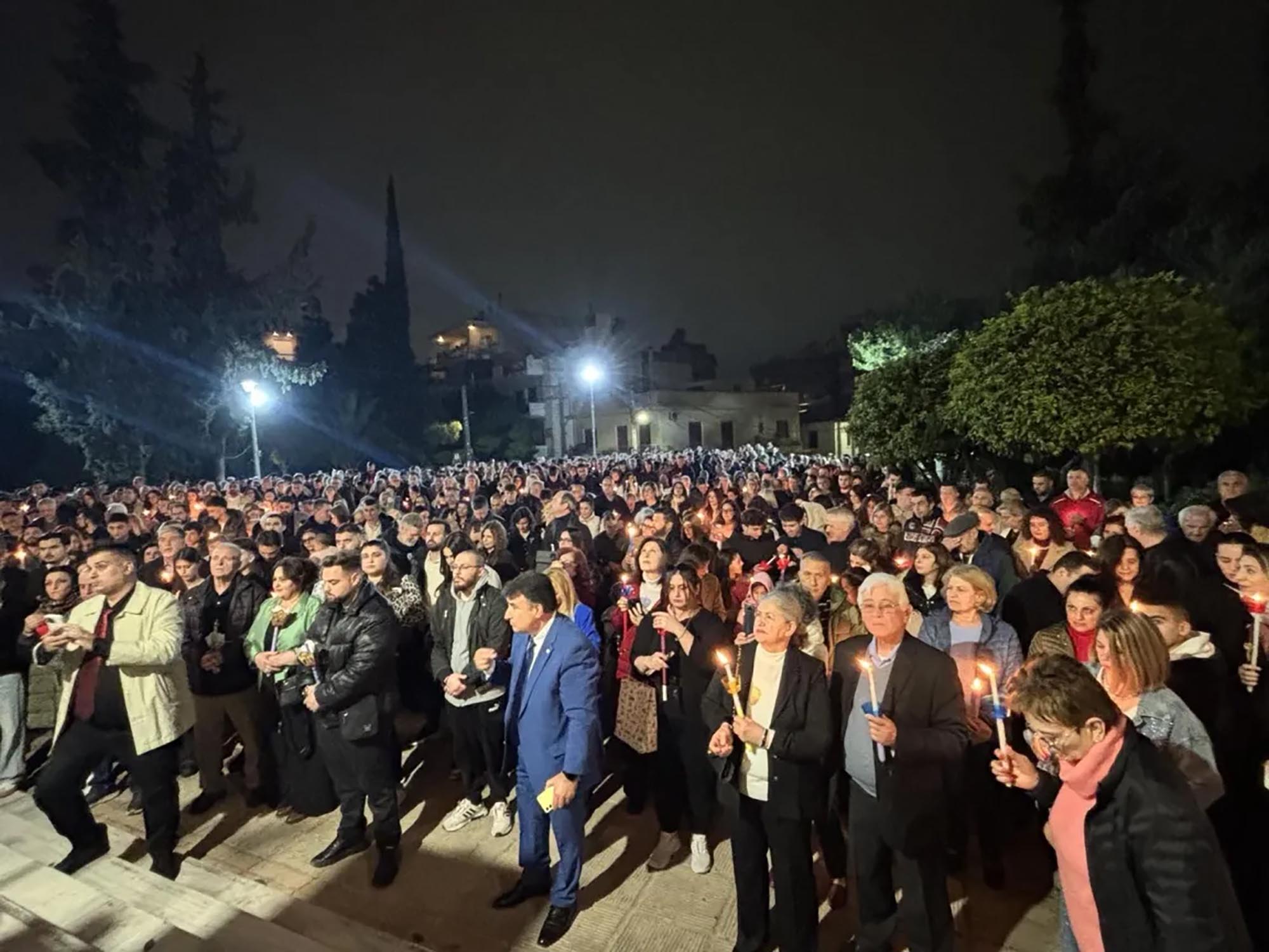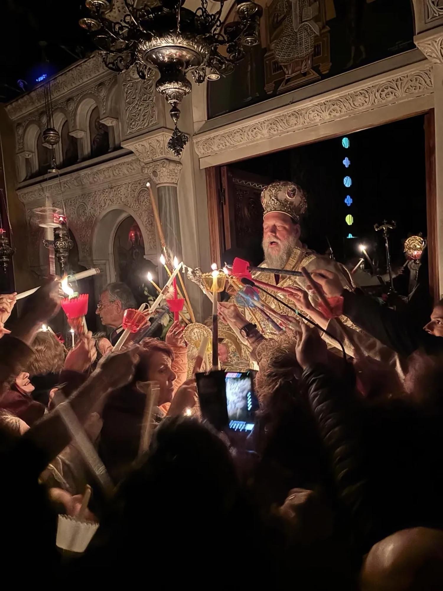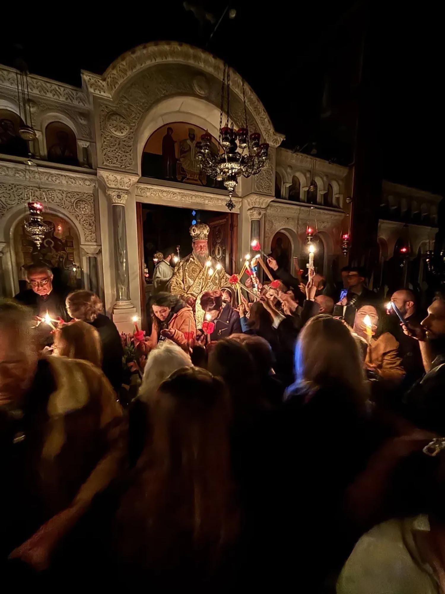 Πλήθος πιστών, με ευλάβεια και κατάνυξη, κρατώντας αναμμένες λαμπάδες από το ανέσπερο φως, κατέκλυσαν τον προαύλιο χώρο του Μητροπολιτικού Ναού για να ακούσουν τον νικητήριο παιάνα της Εκκλησίας μας «Χριστός Ανέστη», που σηματοδοτεί τον θρίαμβο της θείας δόξης και την οριστική νίκη της ζωής επί του θανάτου.