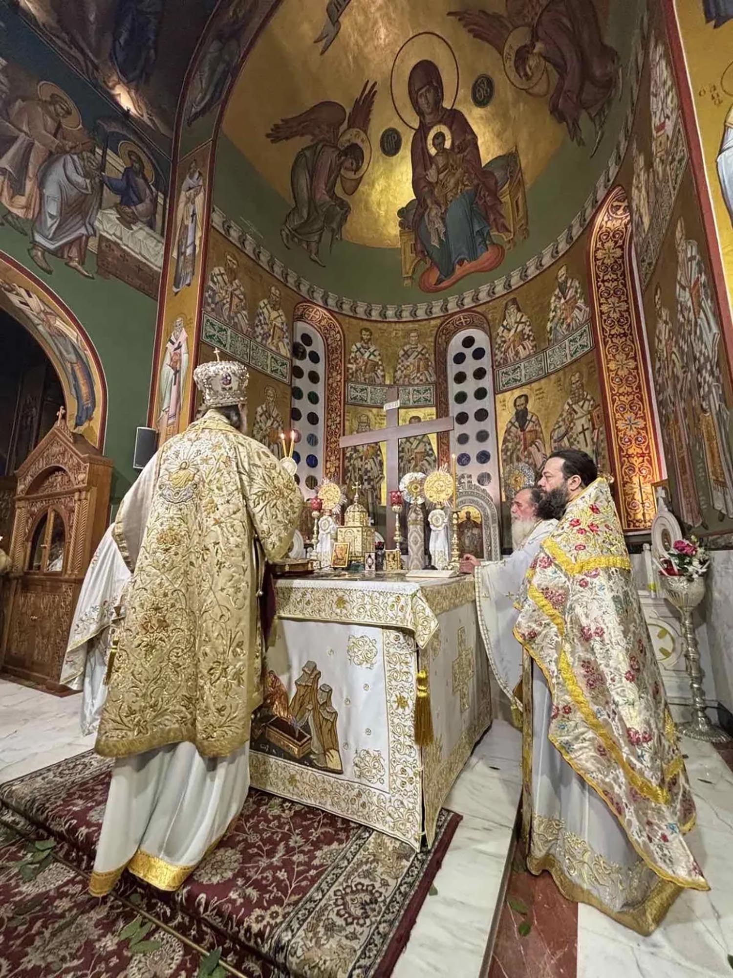 Της Αναστάσιμης Ακολουθίας και της Πανηγυρικής Θείας Λειτουργίας προεξήρχε ο Σεβασμιώτατος Μητροπολίτης Νέας Ιωνίας, Φιλαδελφείας, Ηρακλείου και Χαλκηδόνος κ. Γαβριήλ, πλαισιούμενος από κληρικούς της Ιεράς Μητροπόλεως.