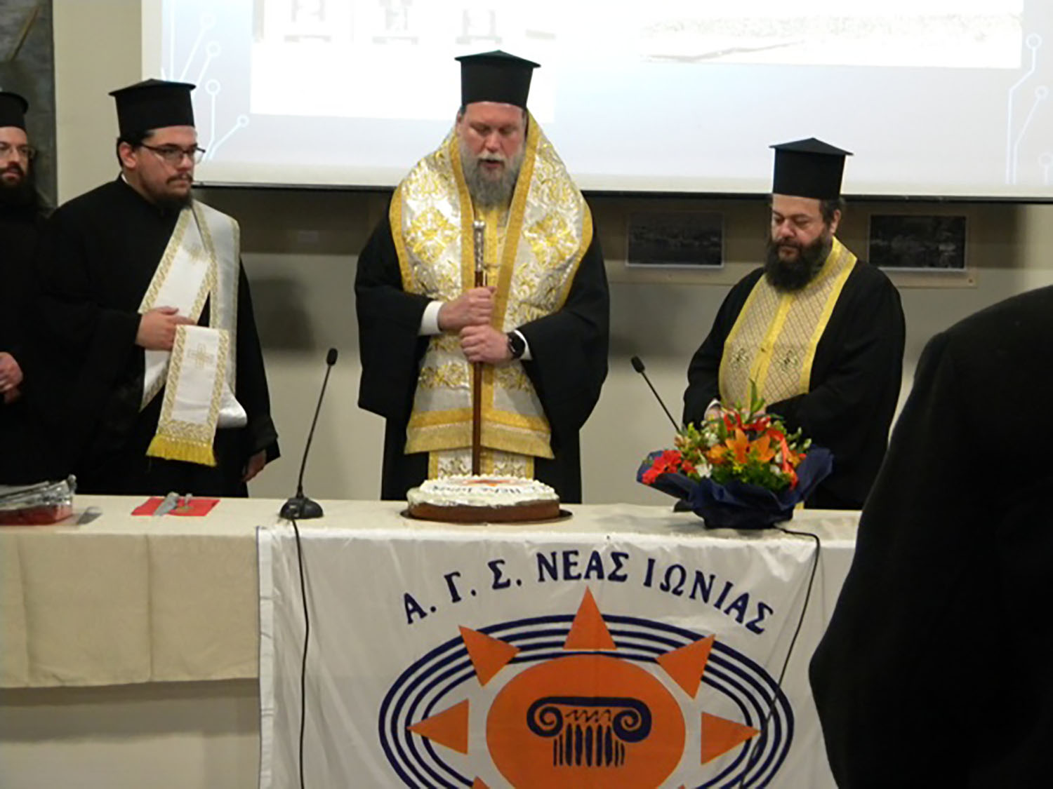 Η εκδήλωση ξεκίνησε με την ευλογία της Πίτας από το Σεβασμιότατο Μητροπολίτη Ν. Ιωνίας, Ν. Φιλαδέλφειας – Ν. Χαλκηδόνας και Ηρακλείου κ. Γαβριήλ, βοηθούμενο από τον Πρωτοσύγκελο της Ιεράς Μητροπόλεως Πανοσιολογιότατο κ. Επιφάνιο.