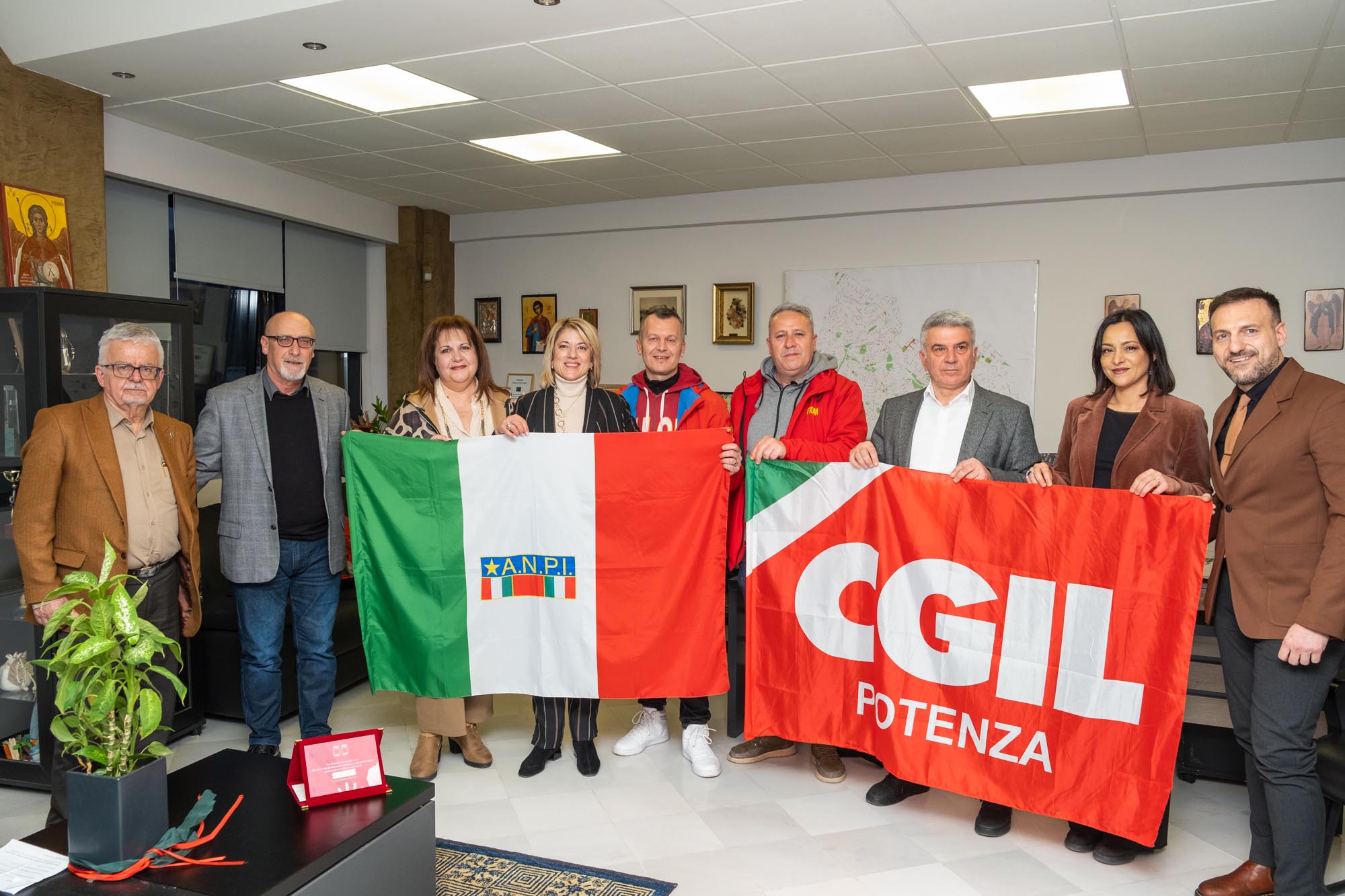 Ο Δήμαρχος στο χαιρετισμό του αναφέρθηκε στην επίσκεψη των Ντανίλο ντι Κίο συντονιστή του Εργατικού Κέντρου του Λαβελλο – Potenza και του Βιντσέντζο Ντε Μικέλε εκπροσώπου της Fiom-Cgil Basilicata, η οποία αποτελεί ένα ιστορικό γεγονός, το οποίο τόσο στην Ελλάδα, όσο και στην Ιταλία μαρτυρά με τον καλύτερο τρόπο την θυσία Ιταλών πατριωτών, που μετά την ανακωχή των Ιταλών, προσχώρησαν στην ελληνική αντίσταση με το ΕΑΜ και τον ΕΛΑΣ.