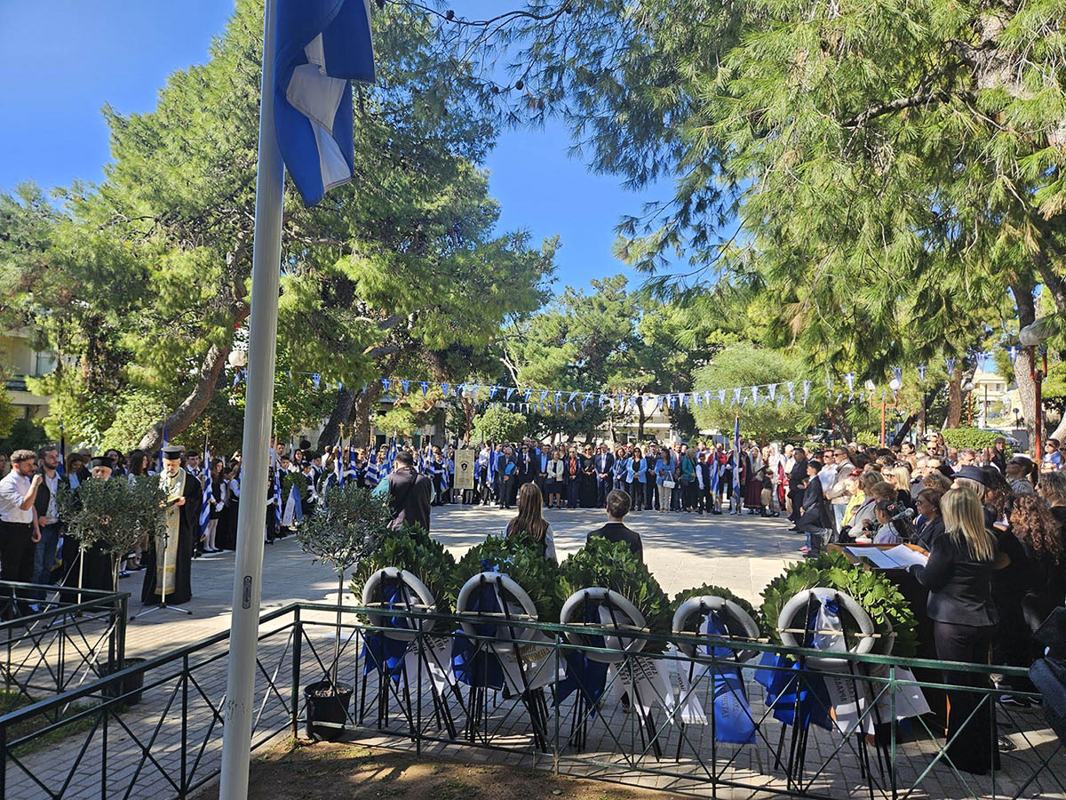 Είχε προηγηθεί η δοξολογία της ημέρας στον Ιερό Ναό της Αγίας Τριάδας και η κατάθεση στεφάνων στο ηρώο της πλατείας Αγίου Λουκά.