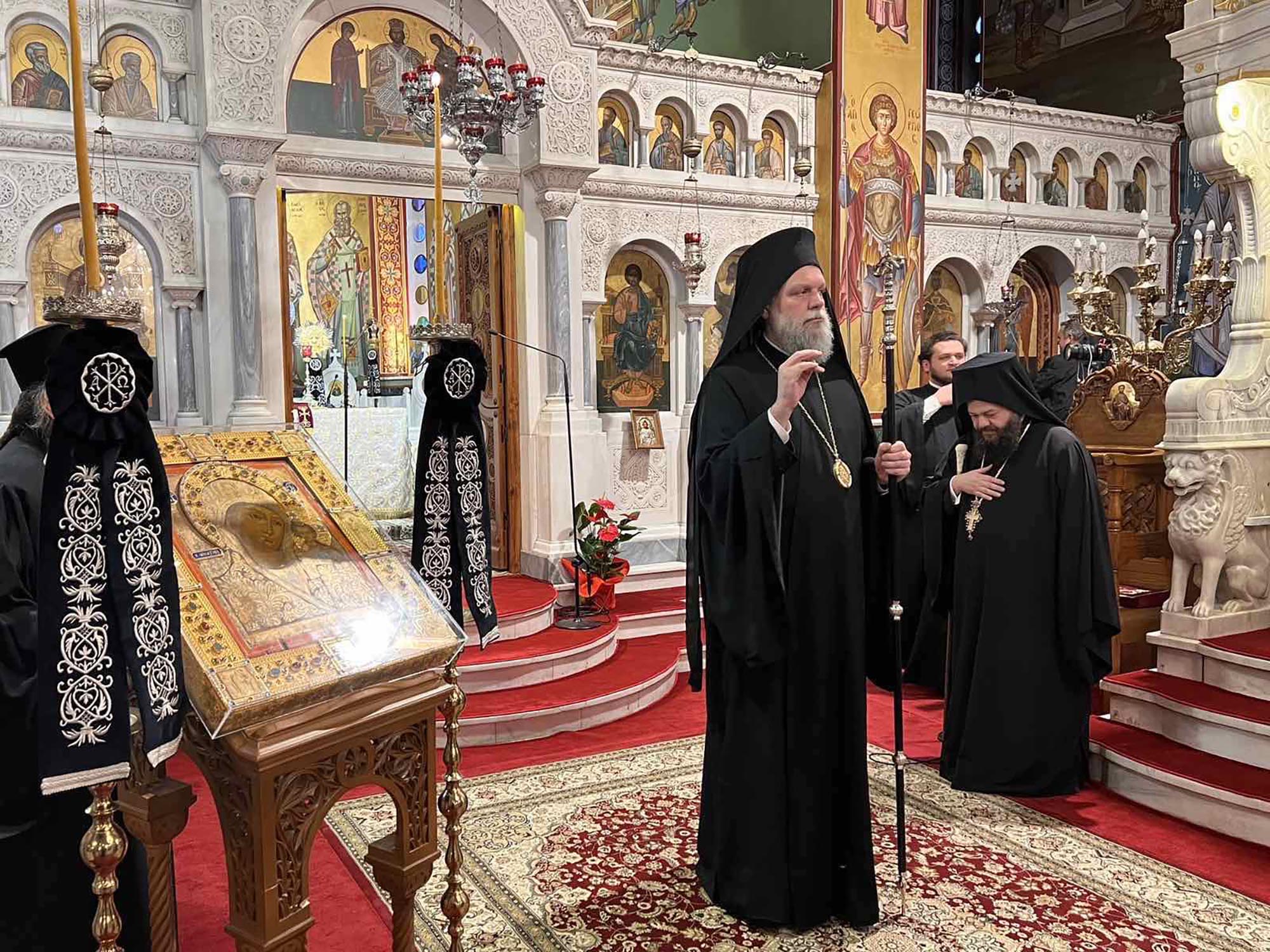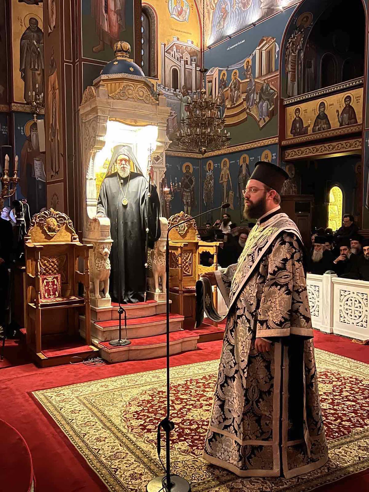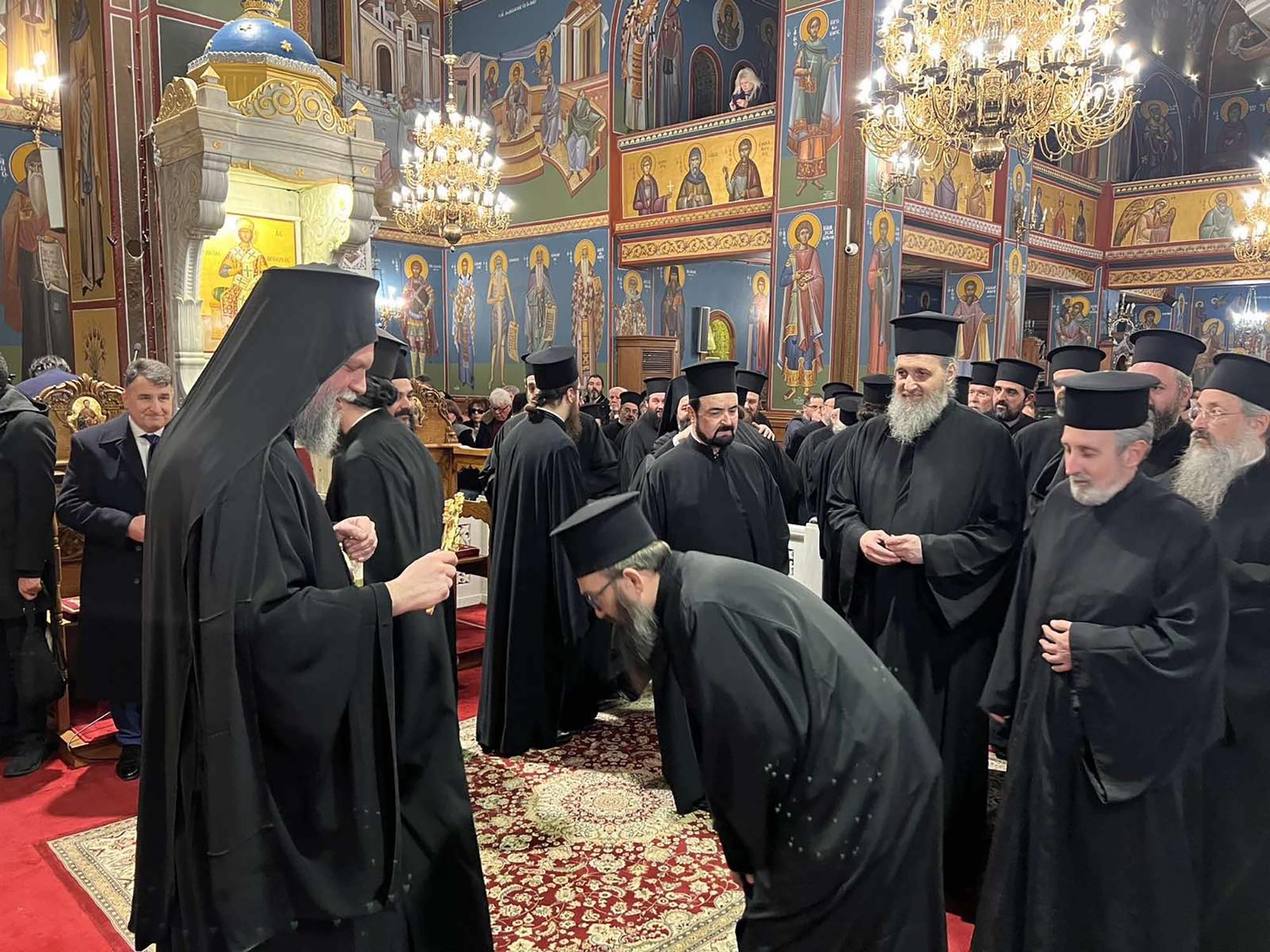 Στο τέλος της Ακολουθίας ιερείς και λαϊκοί αντάλλαξαν τον ασπασμό της αγάπης και της συγχωρήσεως, λαμβάνοντας την ευλογία του Σεβασμιωτάτου».