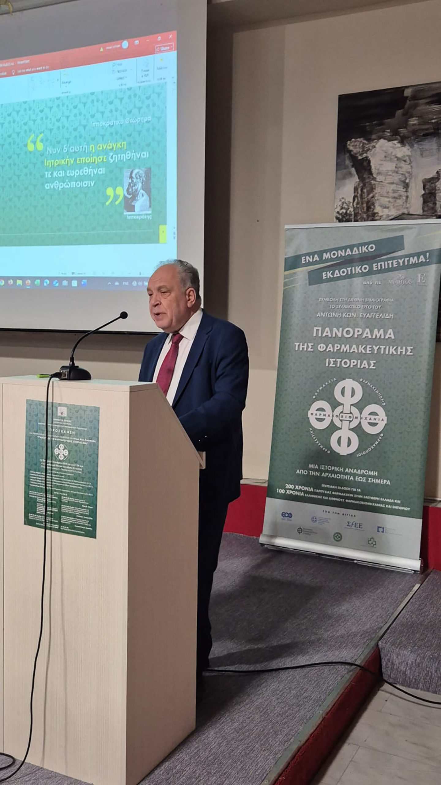 Ο Ακαδημαϊκός και Καθηγητής της Φαρμακευτικής Τεχνολογίας και Νανο-Τεχνολογίας του Ε.Κ.Π.Α., κ. Κων/νος Ν. Δεμέτζος, στην εισήγησή του με θέμα: “Η επιστήμη στον Τομέα της Υγείας και η σημασία ενός Αναγκαίου και διαρκούς διαλόγου με την Κοινωνία: ο Ρόλος του Φαρμακοποιού” ανέλυσε διεξοδικά την σπουδαιότητα και τον ρόλο του φαρμακοποιού στο σήμερα και στο πόσο δύναται να βοηθήσει η άμεση επαφή του με τον ασθενή. Αναφέρθηκε βέβαια και στην Τεχνητή Νοημοσύνη και την χρησιμότητά της στην