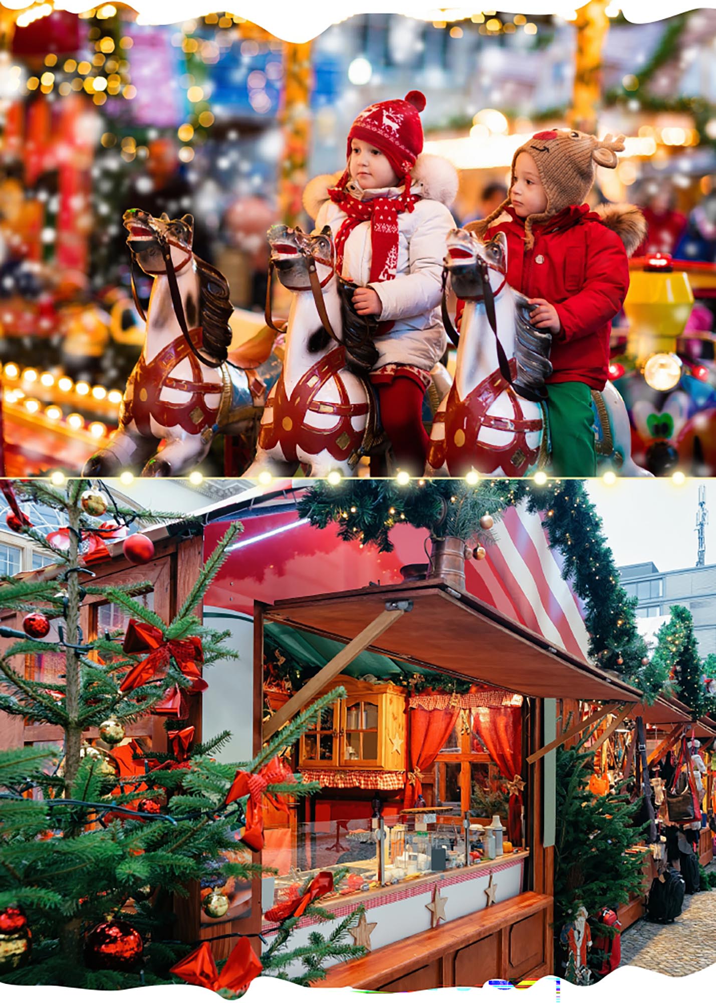 Δίπλα, η χριστουγεννιάτικη αγορά μετατρέπεται σε έναν ατμοσφαιρικό περίπατο με περίπτερα δώρων, στολίδια και γαστρονομικές απολαύσεις: burger, hot dog, πίτσες, βάφλες, ζεστή σοκολάτα, κρασί, ζαχαρωτά — όλα όσα κάνουν τις γιορτές αξέχαστες. Και παντού γύρω, δεκάδες ξωτικά, ήχοι και φώτα θυμίζουν πως τα Χριστούγεννα είναι, πάνω απ’ όλα, μια εμπειρία που μοιραζόμαστε.