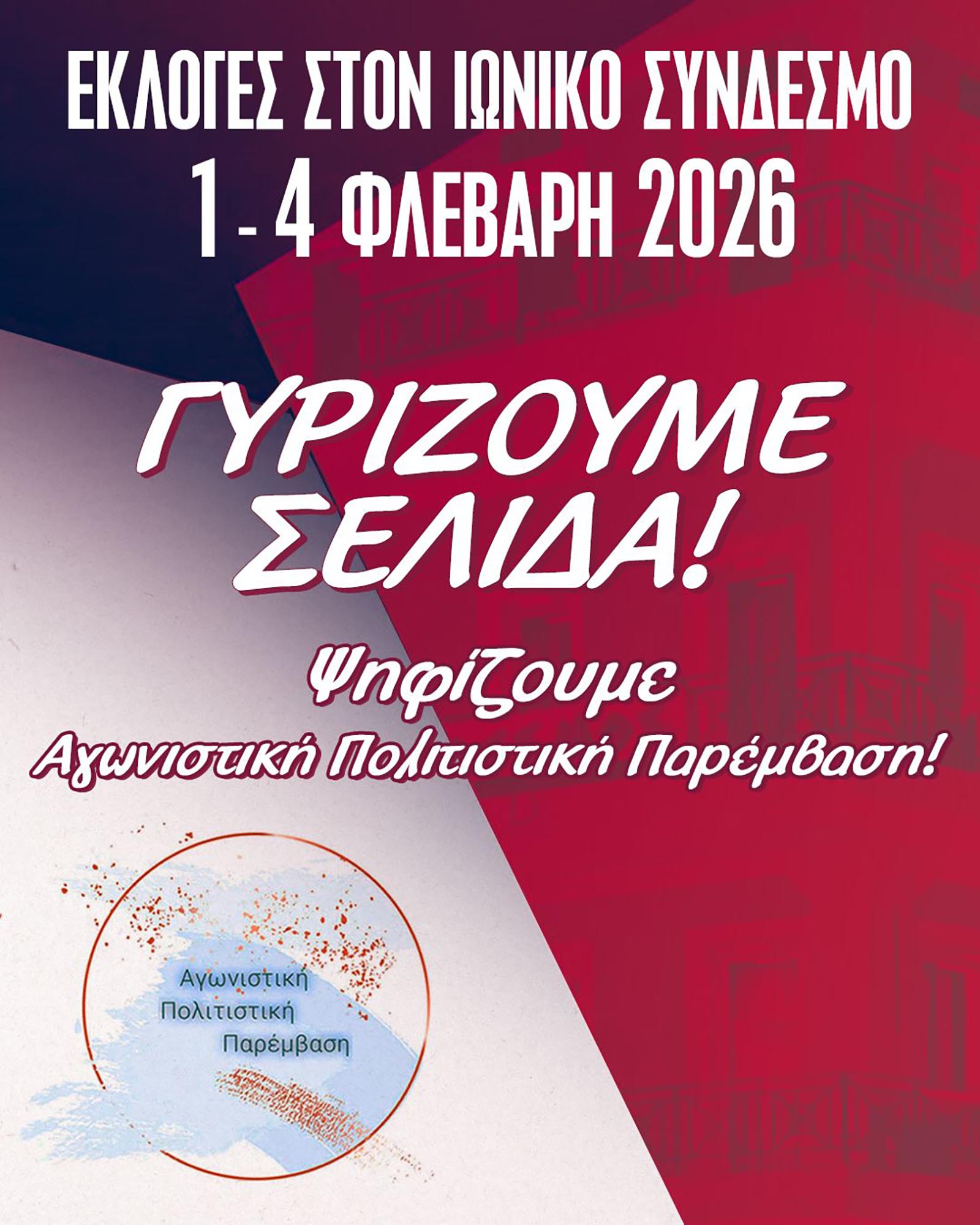 Στις εκλογές 1-4 Φλεβάρη 2026 ψηφίζουµε «Αγωνιστική Πολιτιστική Παρέµβαση»!