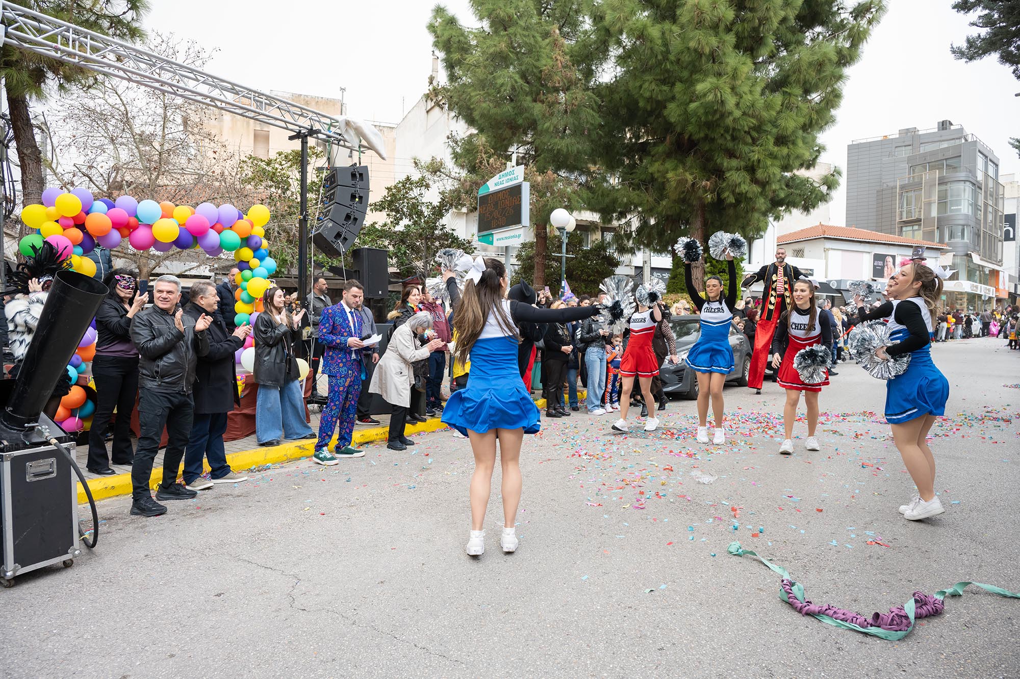 Δεκάδες γκρουπ καρναβαλιστών από σχολεία, συλλόγους, φορείς ή και απλές παρέες της πόλης συμμετείχαν στην παρέλαση της Κυριακής επί της λεωφόρου Ηρακλείου για να καταλήξουν μαζί με τους θεατές – όλη μια μεγάλη παρέα – στο παραδοσιακό γλέντι που στήθηκε στην κεντρική πλατεία του Δήμου και να χορέψουν με τα τραγούδια της Στέλλας Κονιτοπούλου και της ορχήστρας της.