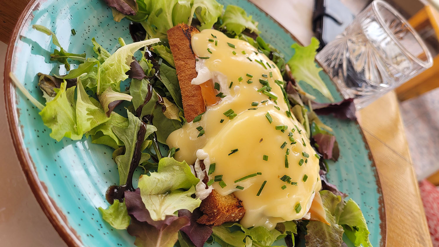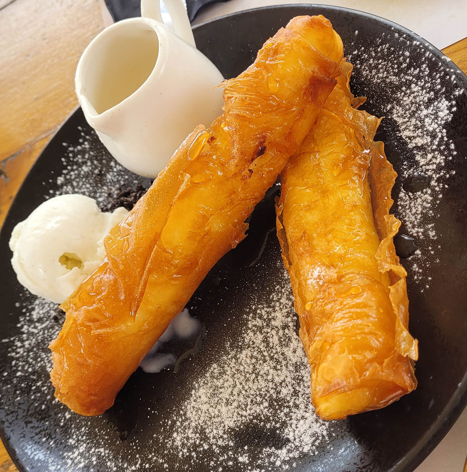 Ο καφές εξαιρετικός, και τα δύο κλασσικά πιάτα για μπραντς, επίσης – Κροκ μαντάμ και αυγά μπένεντικτ με καπνιστό σολομό. Η αποκάλυψη; Το αδιανόητο καταπληκτικό ρολό γαλακτομπούρεκο, το είχαμε πετύχει παλαιότερα όταν είχαμε ξαναπάει. Εάν το πετύχετε, δεν θα φτάσει ένα, σίγουρα. Πάρτε 2-3.