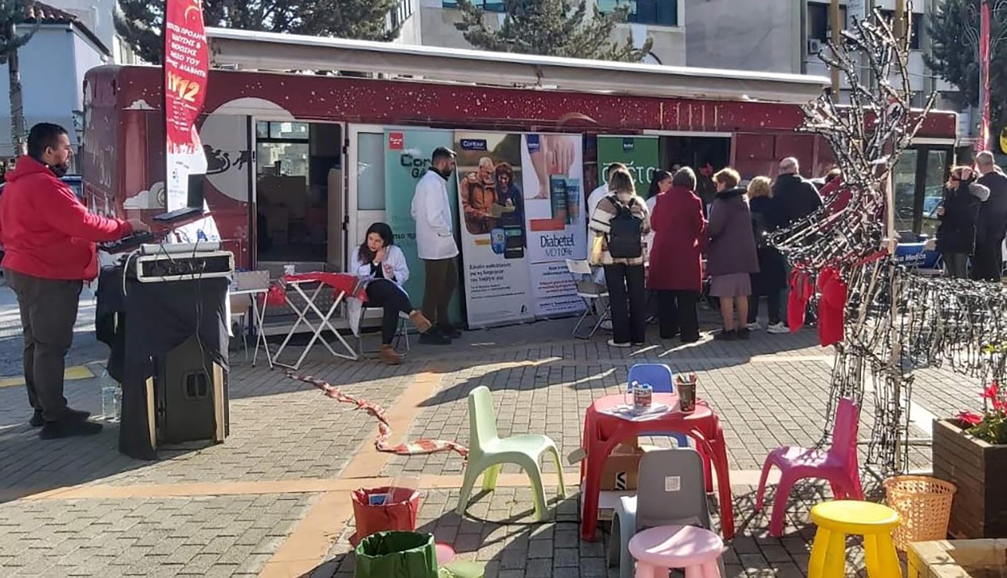 Το Magic Diabetes Bus στάθμευσε στην πλατεία Σημηριώτη, όπου έδωσε τη δυνατότητα σε πλήθος συμπολιτών μας να αξιοποιήσουν τις υπηρεσίες του, σε μια χριστουγεννιάτικη ατμόσφαιρα!