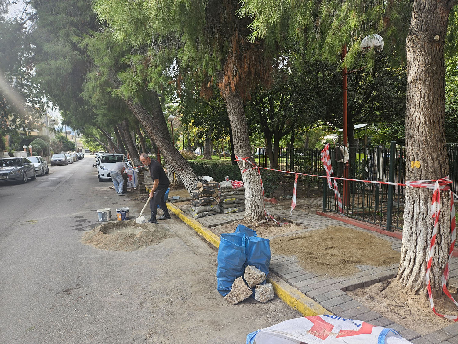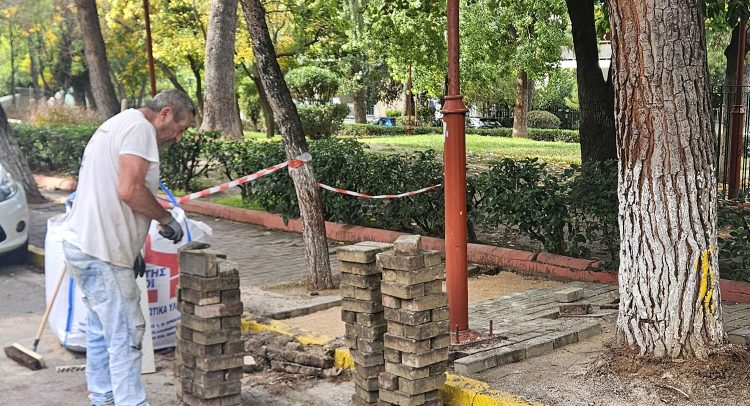 Η Τεχνική Υπηρεσία του Δήμου αφαιρεί τους παλιούς κυβόλιθους, διαμορφώνει εκ νέου τις διαδρομές και τους τοποθετεί ξανά, ώστε ο περίπατος να είναι πιο άνετος και ασφαλής για μικρούς και μεγάλους.
