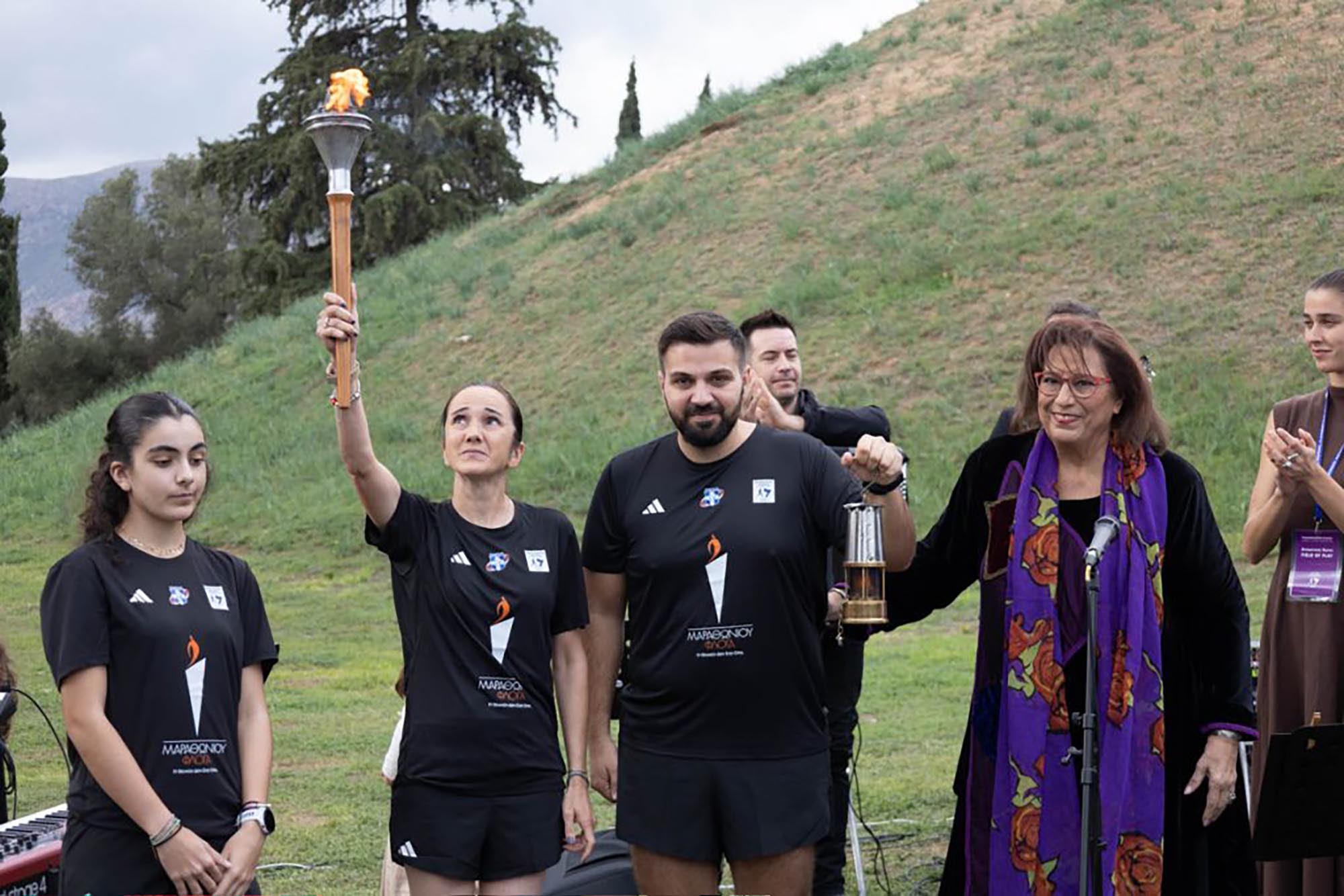Ο Δήμαρχος Μαραθώνα κ. Τσίρκας χαιρέτισε την εκδήλωση και εστίασε την ομιλία του στα πολλαπλά μηνύματα και τους συμβολισμούς που «εκπέμπει» ο ΜΑΡΑΘΩΝΙΟΣ της Αθήνας. Κατά τη διάρκεια της εκδήλωσης έγινε η αφή της φλόγας του Μαραθωνίου, η οποία μεταφέρθηκε στην αφετηρία του Μαραθωνίου, με πρώτη λαμπαδηδρόμο την πρωταθλήτρια του Μαραθωνίου Μάγδα Γαζέα. Τα παιδιά του Μαραθώνα παρέλαβαν τη φλόγα και τη μετέφεραν στον ειδικό βωμό της αφετηρίας. Σημειώνεται ότι η φλόγα φυλάσσεται αναμμένη σε όλη τη διάρκεια του έτους στο Μουσείο των Μαραθωνίων (στο Μαραθώνα) και προσφέρεται στους Μαραθώνιους του εξωτερικού, με ειδική τελετή και πρωτόκολλο. Η φλόγα είναι το παγκόσμιο σύμβολο ειρήνης.