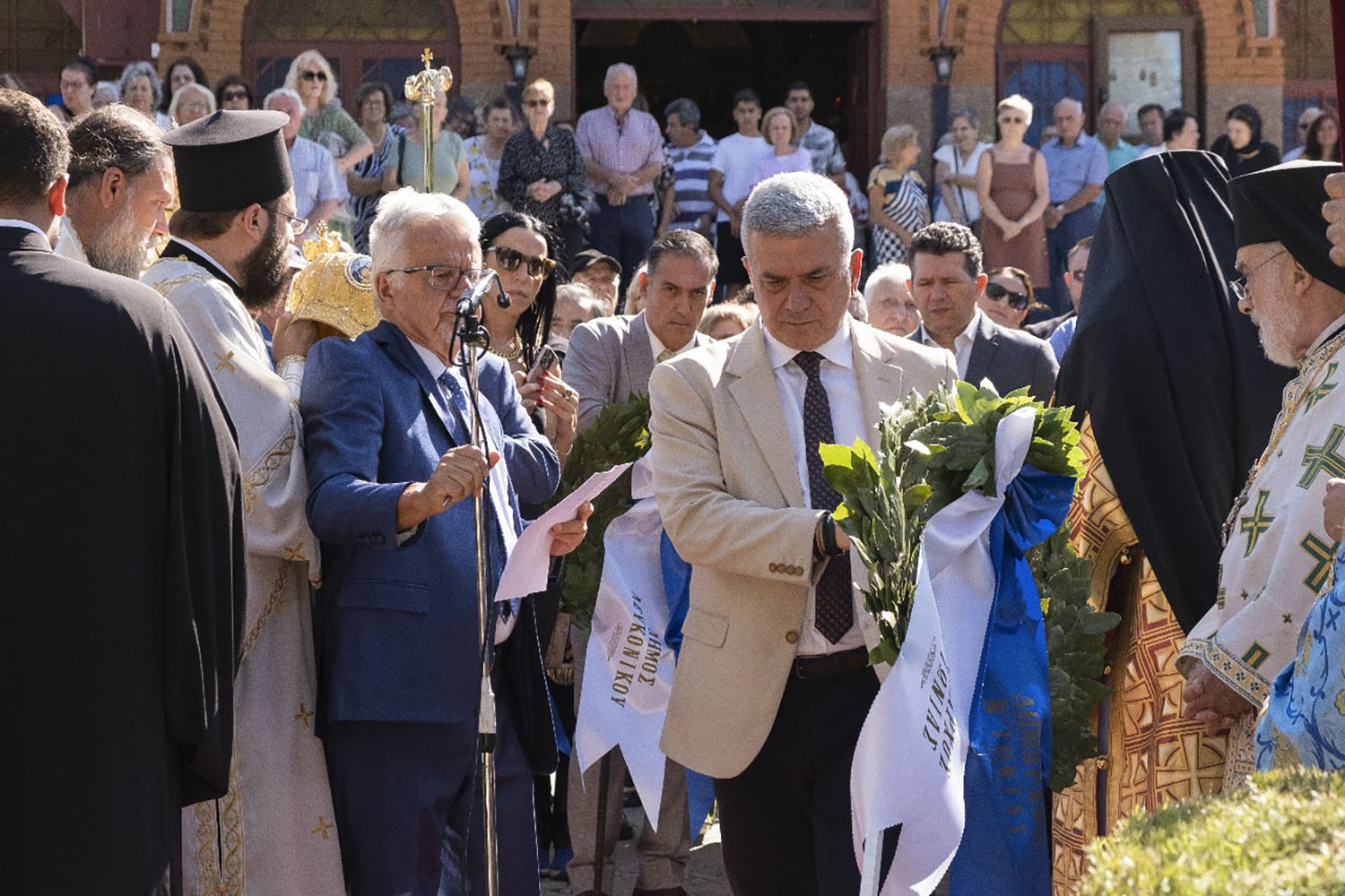 Ακολούθησε επιμνημόσυνη δέηση υπέρ αναπαύσεως των ψυχών των αδίκω θανάτω και μαρτυρικώς τελειωθέντων κατά την Μικρασιατική Καταστροφή και κατάθεση στεφάνων στη προτομή του Μακαριστού Επισκόπου Πατάρων Μελετίου στο προαύλιο χώρο του Ιερού Ναού.