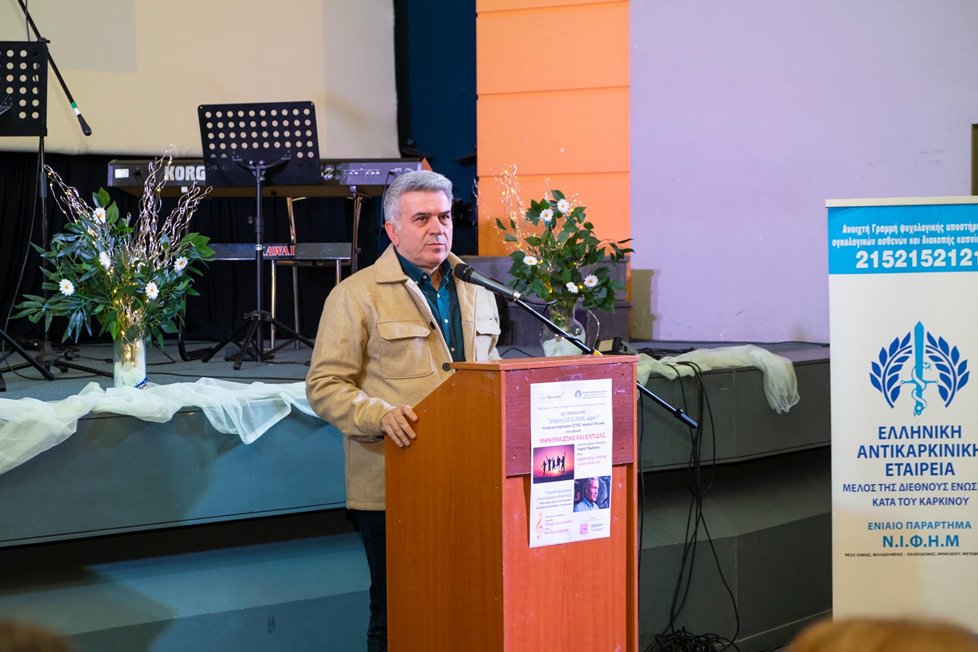 Στο χαιρετισμό του ο Δήμαρχος Νέας Ιωνίας Παναγιώτης Μανούρης αναφέρθηκε στην αξία της πρόληψης ως βασικό στοιχείο για την αντιμετώπιση του καρκίνου.