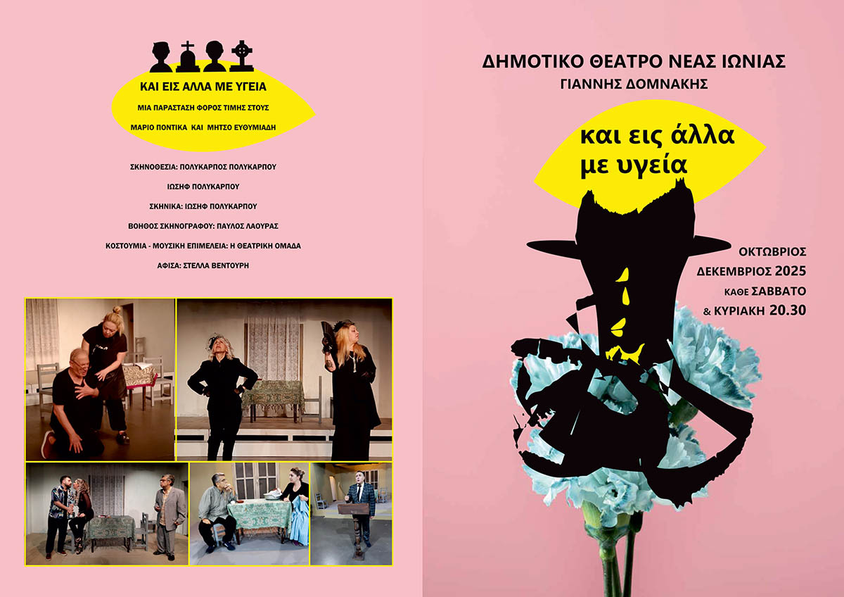 Το Δημοτικό Θέατρο Νέας Ιωνίας ” Γιάννης Δομνάκης” ξεκινά τις παραστάσεις του για τη χειμερινή περίοδο με την παράσταση “Και εις άλλα με υγεία”.