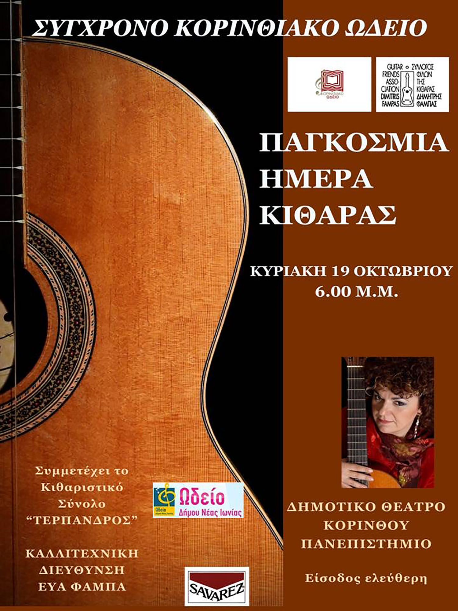 Το κιθαριστικό Σύνολο «Τέρπανδρος» του Ωδείου Νέας Ιωνίας θα παρουσιάσει τη δουλειά του στο Δημοτικό Θέατρο Κορίνθου, την Κυριακή 19 Οκτωβρίου 2025 στο πλαίσιο της Παγκόσμιας Ημέρας Κιθάρας.