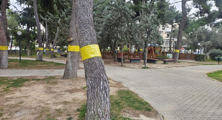 «Θέλουμε να ενημερώσουμε τους κατοίκους της πόλης μας ότι η υπηρεσία Πρασίνου του Δήμου Νέας Ιωνίας, τοποθέτησε ειδικές κίτρινες κολλητικές ταινίες στους κορμούς πεύκων σε διάφορα σημεία της πόλης.