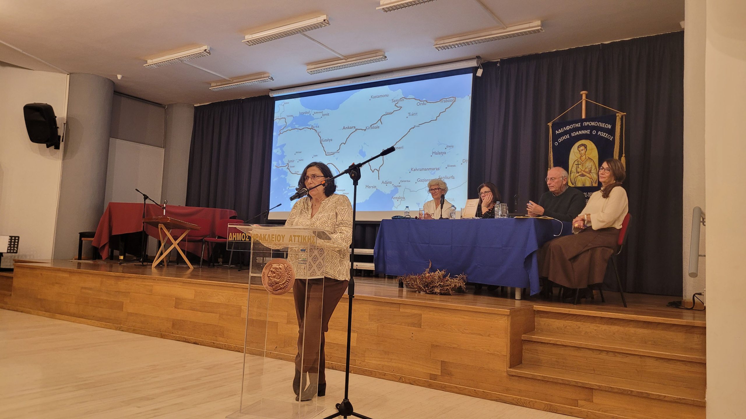 Η παρουσίαση ξεκίνησε με τη “ψυχή” της εκδήλωσης, την πρόεδρο της Αδελφότητας Προκοπιαίων, Βιβή Σαραντίδου. Όπως σημείωσε μεταξύ άλλων «το βιβλίο που παρουσιάζουμε απόψε δεν είναι λογοτεχνικό, δεν είναι ιστορικό. Δεν είναι το βιβλίο. Είναι μια πρόσκληση σε ένα βαθύ συγκινητικό ταξίδι. Είναι ένα προσκύνημα. Είναι ένα προσκύνημα προς τις πατρίδες της καρδιάς μας, στην άλλην πλευρά του Αιγαίου, εκεί όπου κάποτε έσφυζε ο Ελληνισμός και η Χριστιανοσύνη».