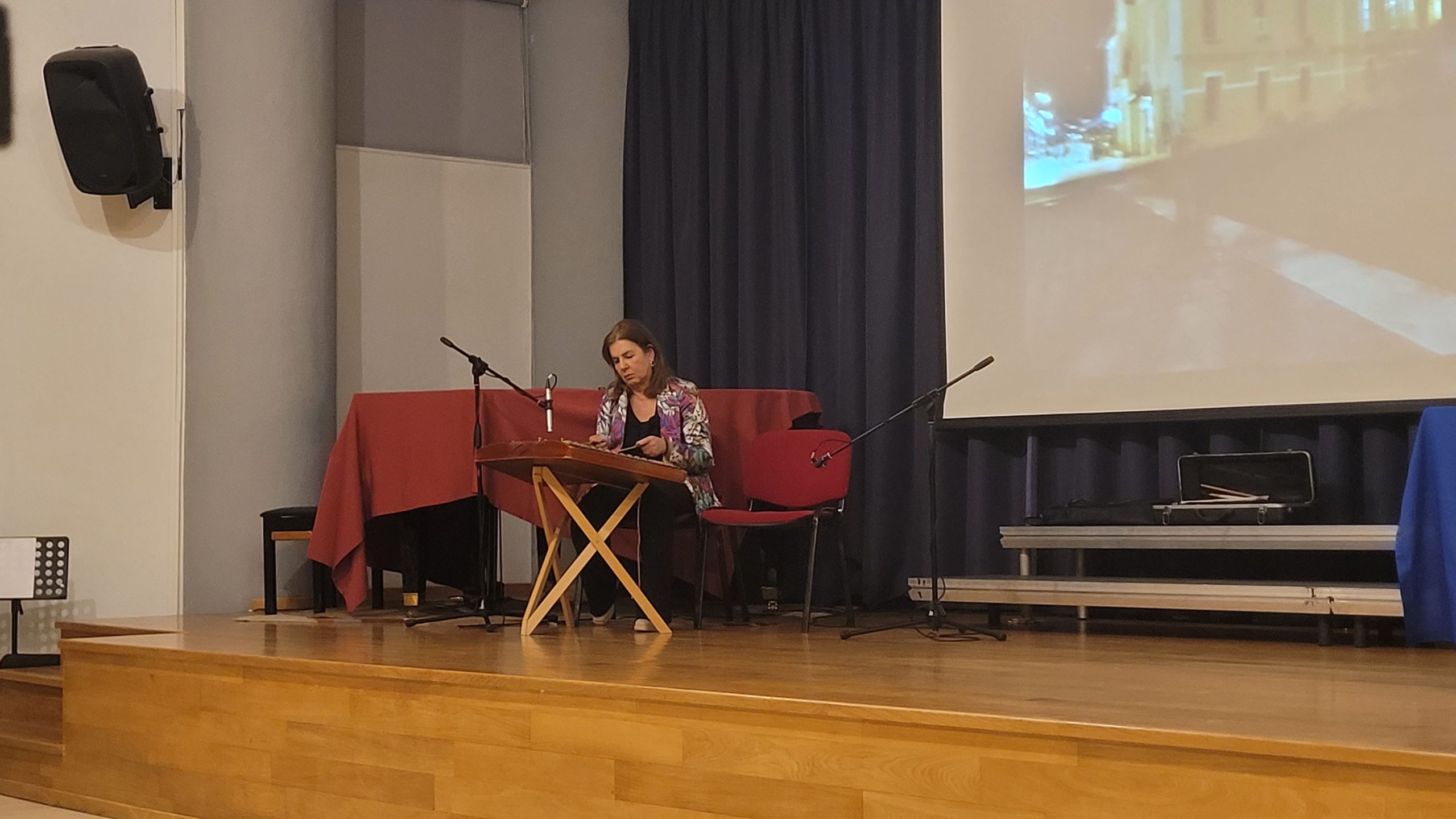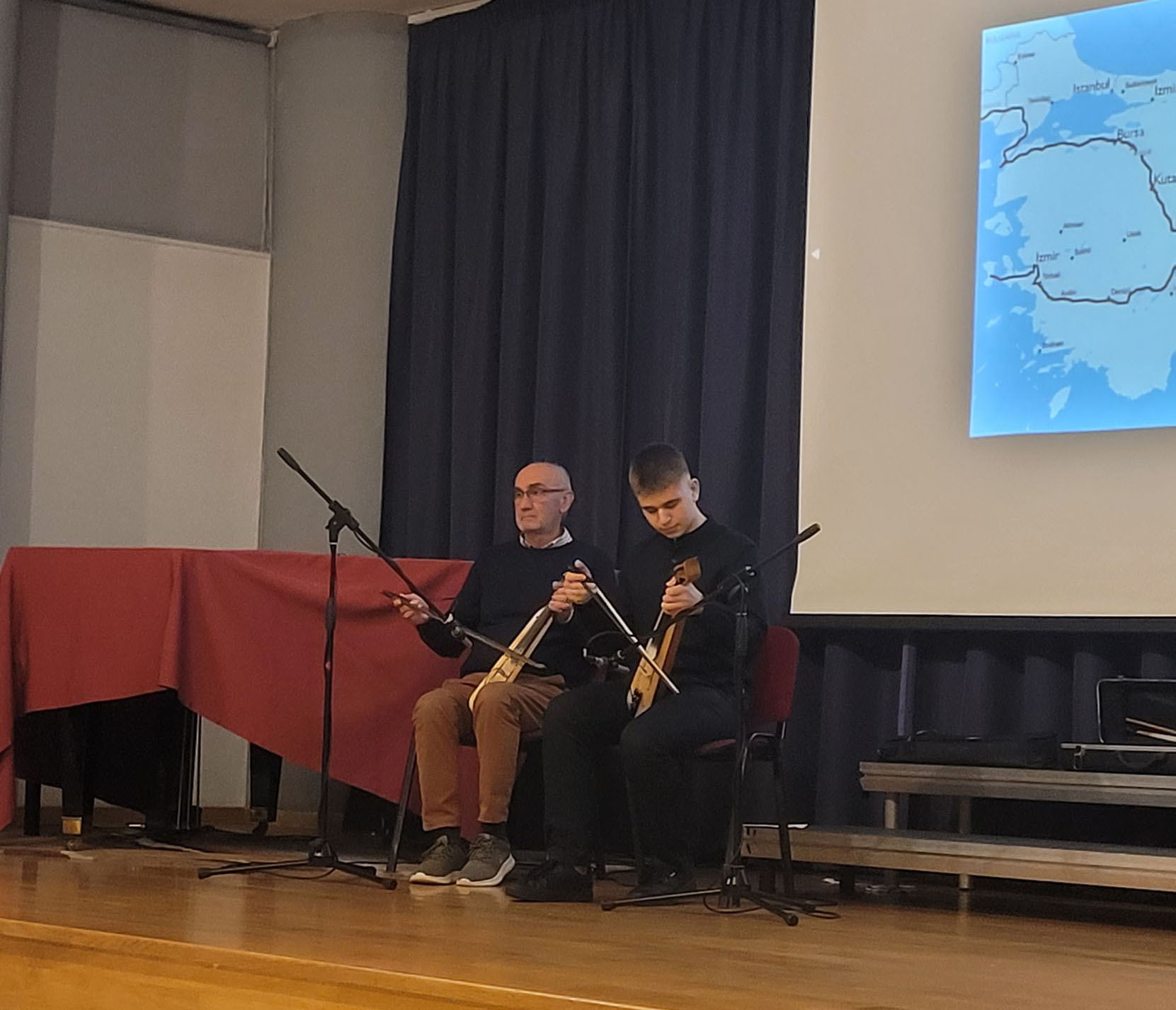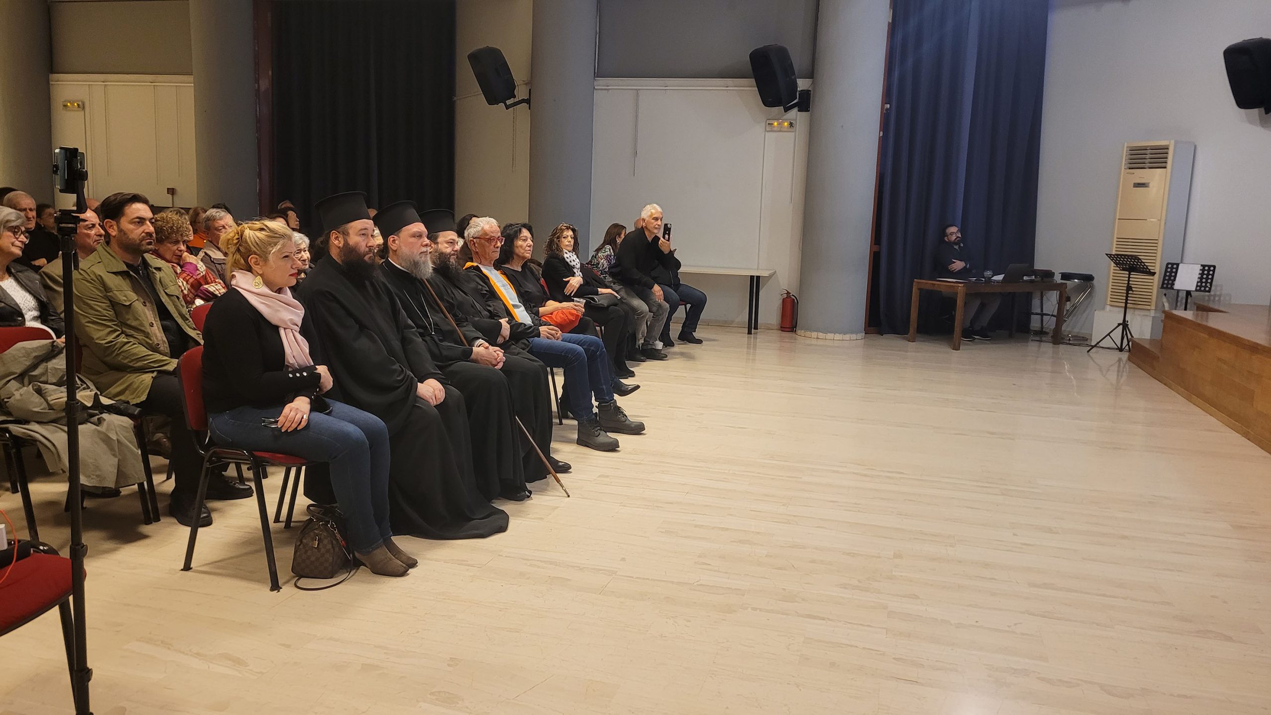 Ενδιάμεσα γέμιζαν την αίθουσα μελωδίες από την Σοφία Γιαννακού στο σαντούρι και τους Βαλέριο Βασιλειάδη και Γιάννη Παπαδόπουλο στην ποντιακή λύρα, δημιουργώντας μια ατμόσφαιρα μνήμης και συγκίνησης, όπου ο λόγος συνάντησε τη μουσική παράδοση.