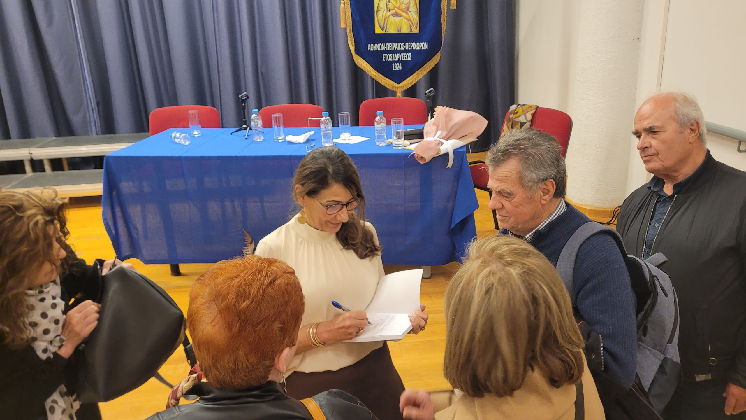 Η ίδια η συγγραφέας μίλησε για τον εαυτό της, στο τέλος της εκδήλωσης. Όπως είπε «είμαι απόγονος προσφύγων από τα παράλια της Βιθυνίας και από τον Πόντο. Εκατό χρόνια μετά και ενώ η δεύτερη γενιά προσφύγων, οι γονείς μας δηλαδή, σιγά – σιγά εκλείπουν, γίναμε εμείς η τρίτη γενιά, οι παραλήπτες της πολιτισμικής κληρονομιάς και της ιστορίας των προσφύγων προγόνων μας.